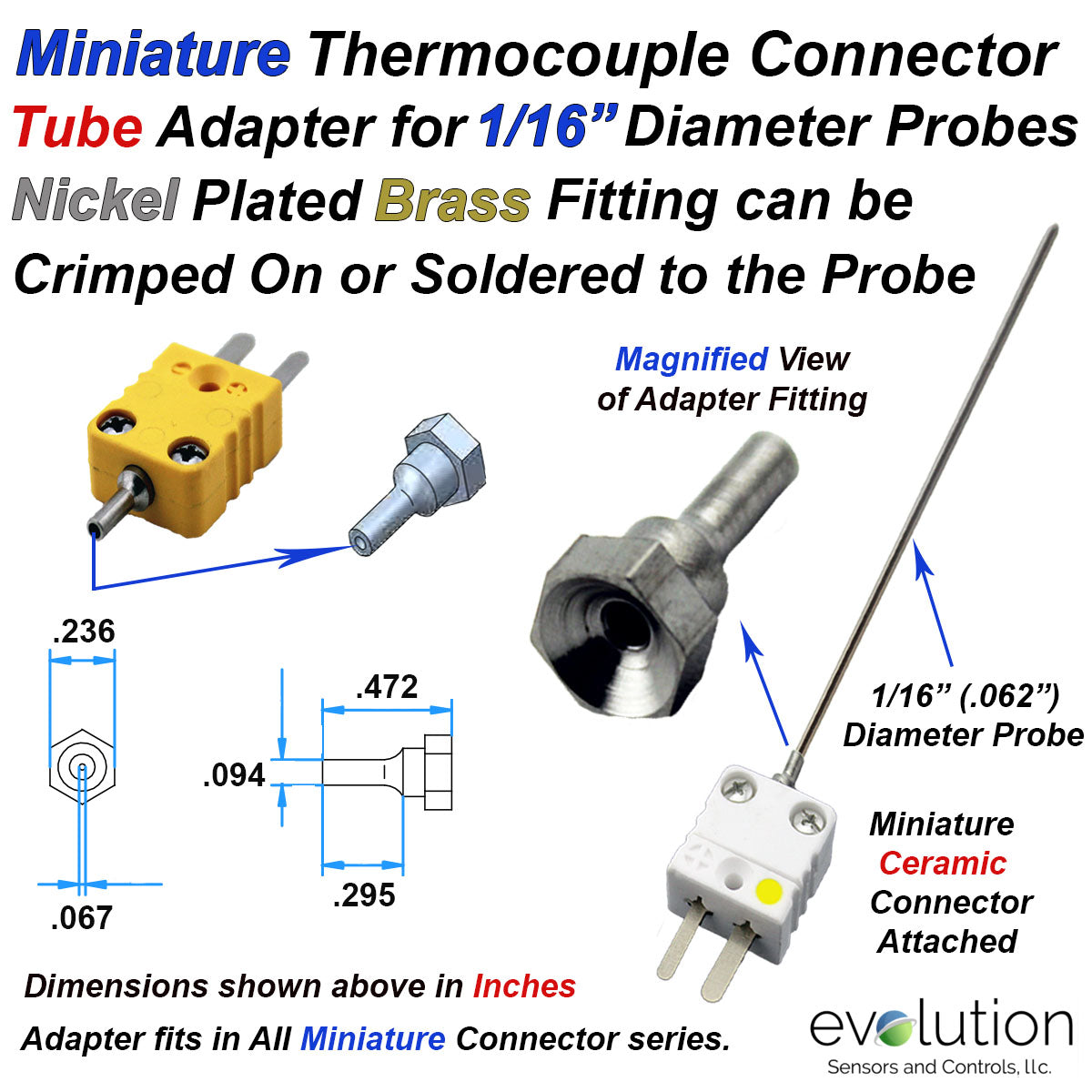 Miniature Size Thermocouple Connector Tube Adapter for 1/16" (.062") Diameter Probes