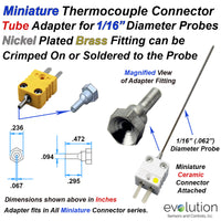 Miniature Size Thermocouple Connector Tube Adapter for 1/16" (.062") Diameter Probes